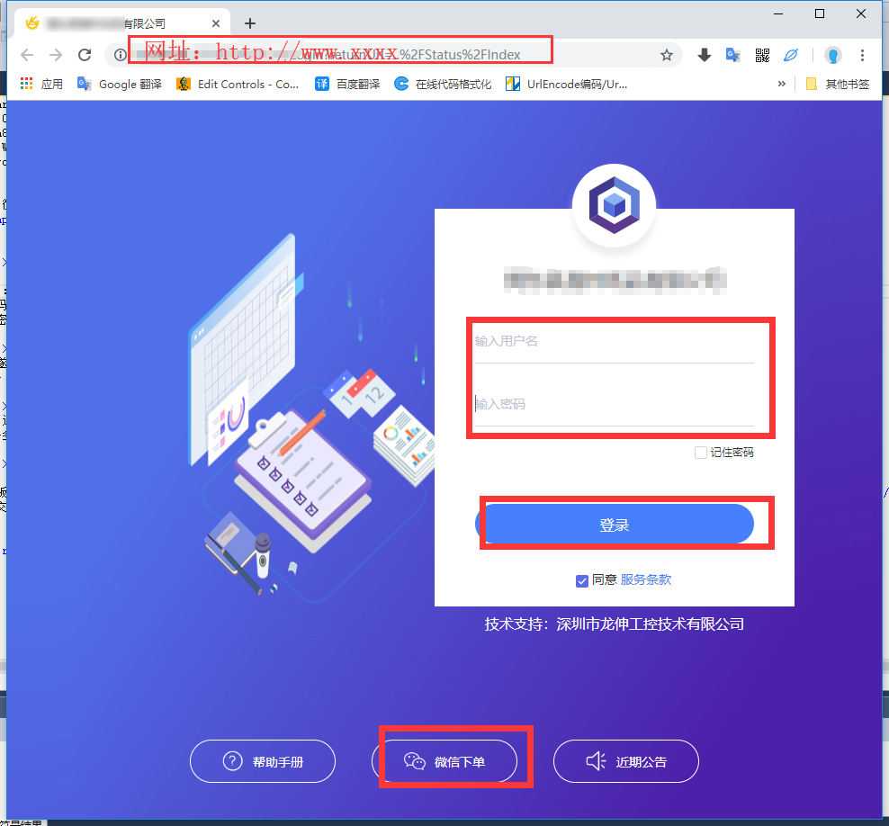 3.输入我司客服人员提供的用户名和密码, 勾选绑定当前微信 以后操作就不需要登录,且可以接收到我司发送的订单拒收消息