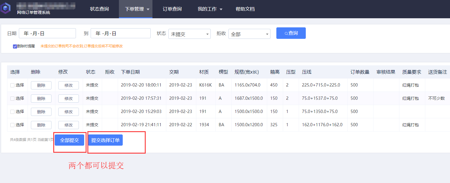 所有订单都需要提交,未提交的订单我司不会收到,订单提交后将不可修改,如提交后还有变动请联系服客人员处理