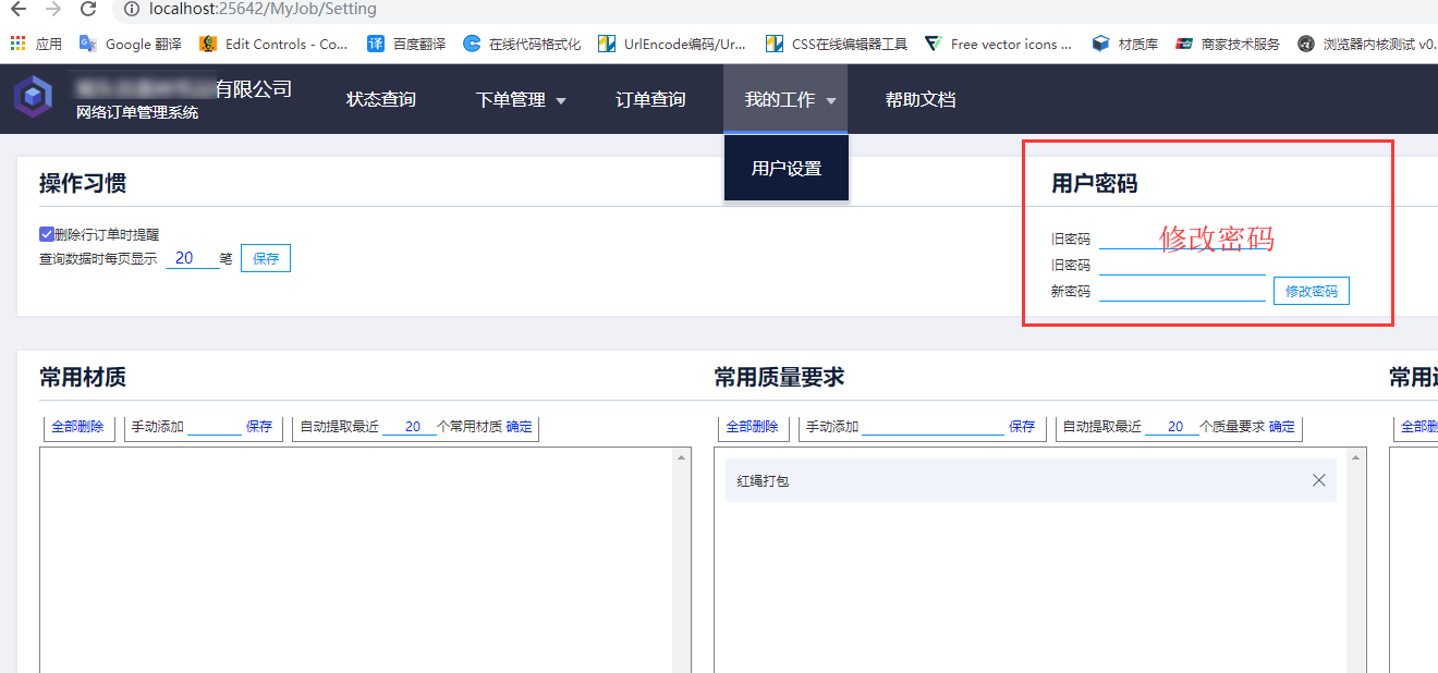 第一次登录提示修改密码 ,以后修改密可以进入 "我的工作-用户设置"